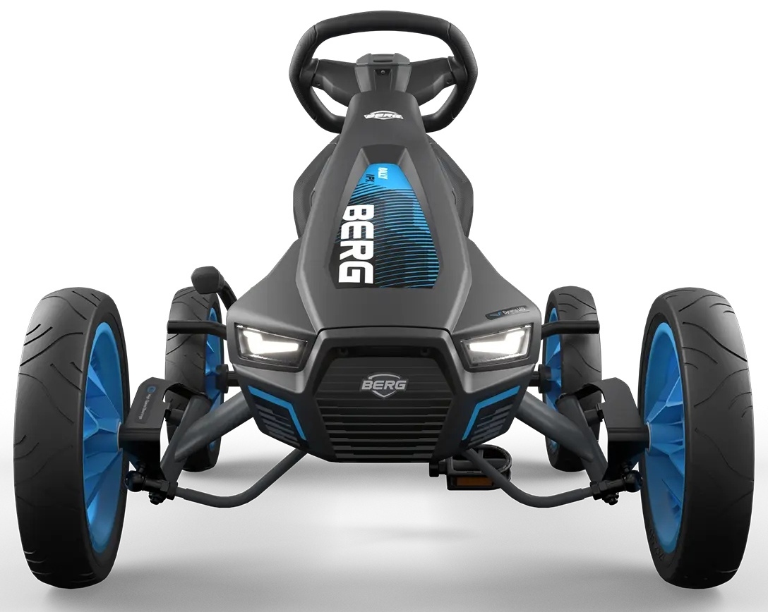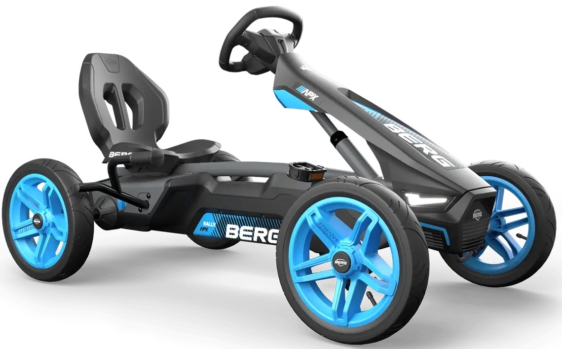 Веломобіль Berg Rally APX Blue оснащений LED фарами, звуковим сигналом на кермі на 4 тони і гоночними шинами!