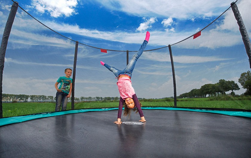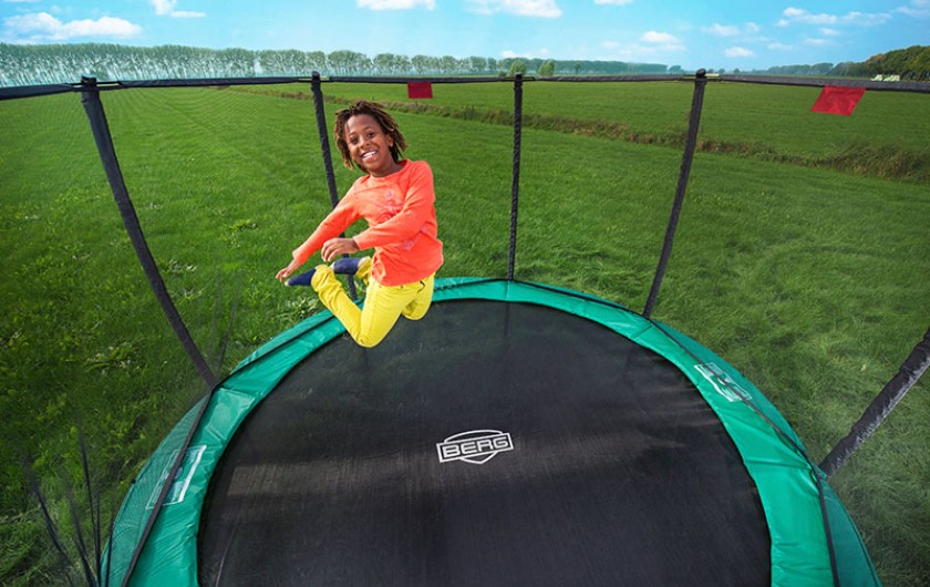 Овальна форма батута дозволяє дитині під час стрибків триматися ближче до центру.