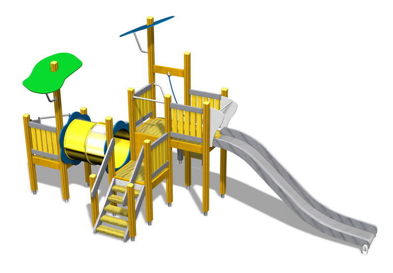 Применяется как отдельностоящая игровая детская площадка так и в составе игрового комплекса.