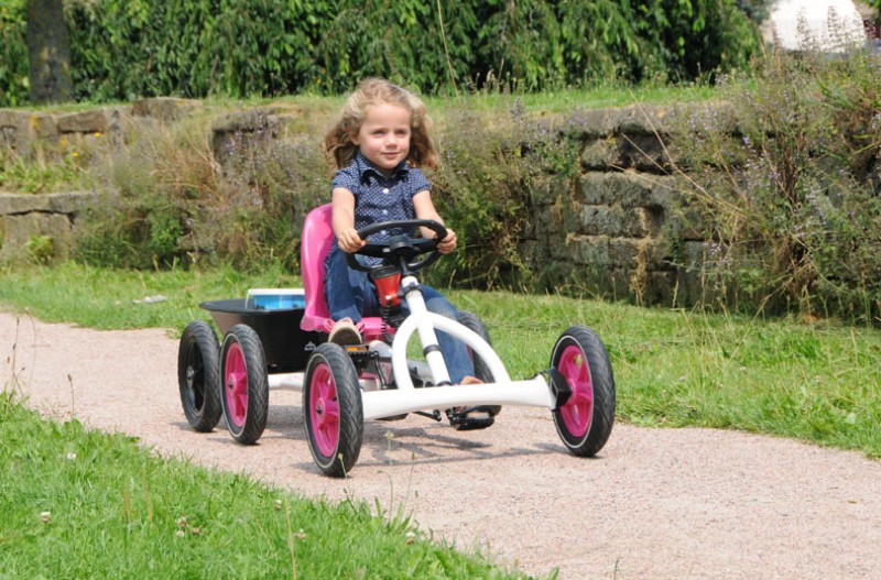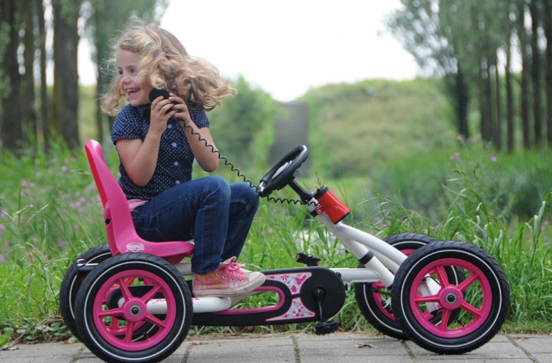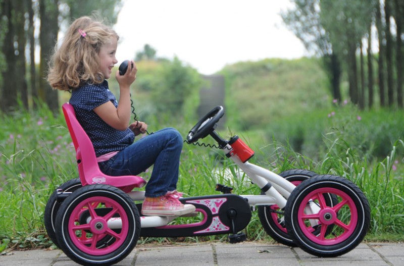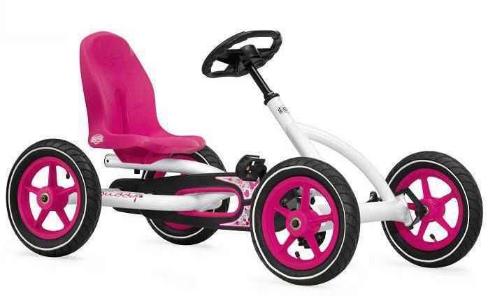 Классический детский веломобиль Berg Buddy White . Наиболее часто покупается для девочек. Очень надежная конструкция. Металлическая рама. Благодаря уникальному приводу BFR с двумя цепями можно легко ехать вперед, назад и тормозить педалями. Колеса на подшипниках с резиновыми покрышками и камерами. За счет регулируемых по высоте руля и по длине сиденья веломобиль Berg Buddy прослужит Вам не один год.