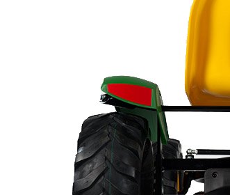 Веломобіль виконаний в оригінальному стилі професійної автотехніки John Deere. Серія веломобілів Berg TRAXX. Оснащений шинами з позашляховим протектором, передніми колесами діаметром 40 см і задніми колесами діаметром 46 см, вихлопною трубою. На всі моделі TRAXX можна встановити бульдозерний ківш і навантажувач. Унікальний привід. Рух вперед, вільне котіння,