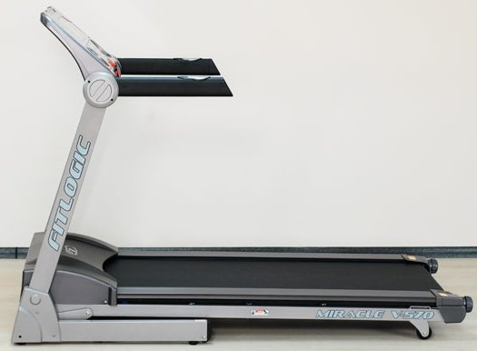 Максимальный вес пользователя - до 125 кг. Особенности конструкции FitLogic Miracle V570: - транспортировочные ролики - держатель бутылки - система складывания с использованием гидравлического целиндра для плавного опускаяния бегового полотна - кнопки быстрой регулировки скорости и угла наклона бегового полотна - безопасная система блокировки - питание от сети 220 В