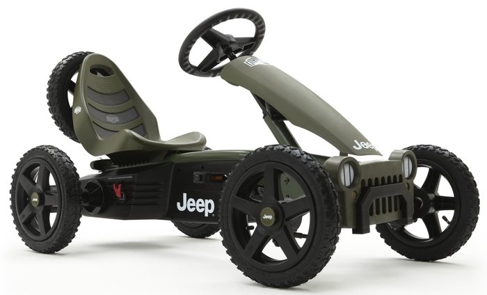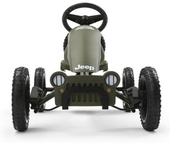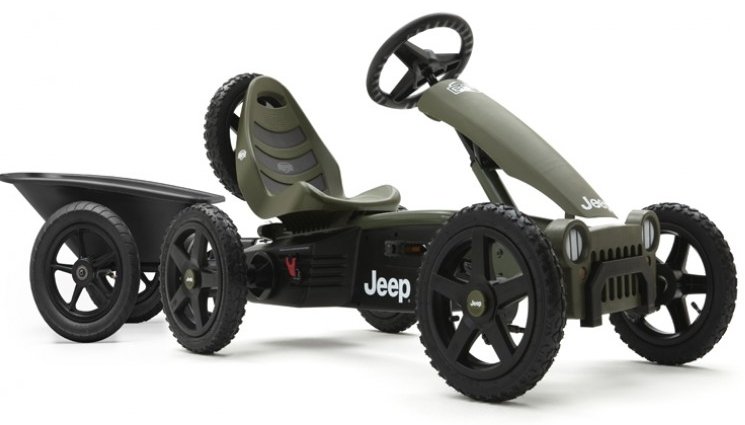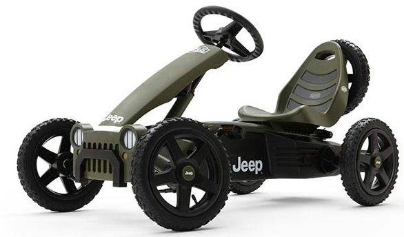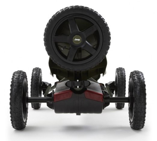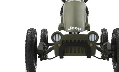 Berg Jeep Adventure — легкий, компактний веломобіль, обладнаний усім необхідним для подорожей: всюдихідні шини, запасне колесо та фаркоп для причепа Junior.