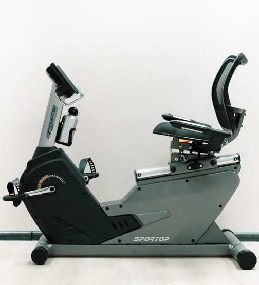 15943Велотренажер SPORTOP B1100 горизонтальныйSPORTOPВес пользователя до 130 кг. Масса маховика 9 кг. 16 уровней нагрузки Полупрофессиональная модель Горизонтальный Электромагнитная система нагружения с электронным управлением 19 программ тренировки.