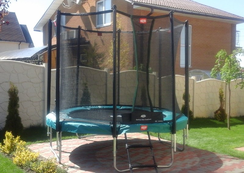 Купили неделю назад. Впечетления. Прыгать действительно клево, очень мягкий. Защита на пружинах толстая, когда на ней стоишь практически не чувствуются пружины под защитой. Лестницу брали родную с широкими ступенями. Сын трех лет сам по ней взбирается на батут без проблем.
