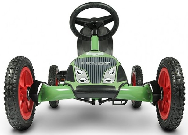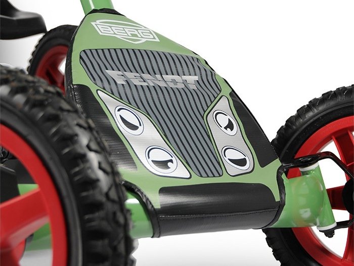 Характеристики веломобіля Berg Fendt: - вікова група 3-8 років; - металева рама; - регульоване за висотою кермо; - налаштовуване сидіння (можна кататися не один рік); - привід BFR (вільний хід при нерухомих педалях; задній хід, гальмування); - незалежна підвіска (стійкий на будь-якій поверхні); - передній аеродинамічний спойлер; - позашляхові шини; - колеса на підшипниках кочення діаметром 31,5 см; - дорожній просвіт 7,5 см (до нижнього положення педалі – 5,5 см); - мінімальна відстань від далекого положення педалі до краю сидіння – 38 см, до спинки сидіння – 55 см; - максимальна відстань від далекого положення педалі до краю сидіння – 50 см, до спинки сидіння – 67 см;
