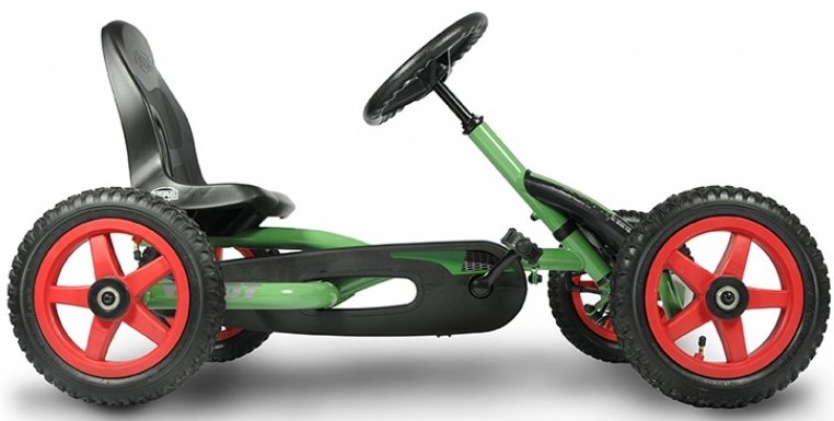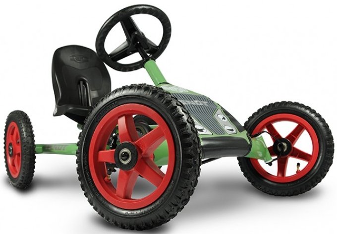 Дуже надійна конструкція. Металева рама. Завдяки унікальному приводу BFR з двома ланцюгами можна легко їхати вперед, назад і гальмувати педалями. Колеса на підшипниках з гумовими шинами з посиленим протектором і камерами. Регульовані за висотою кермо та за довжиною сидіння.