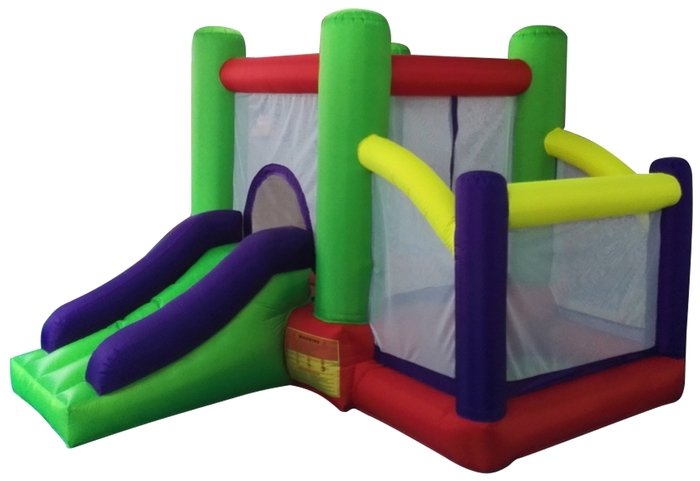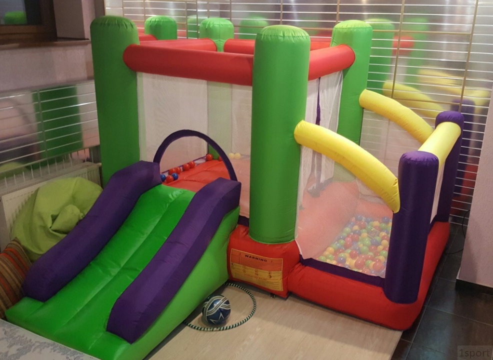 Зона прыжков и горка изготовлены из прочной водостойкой ламинированной брезентовой ткани плотность 454 грамм.