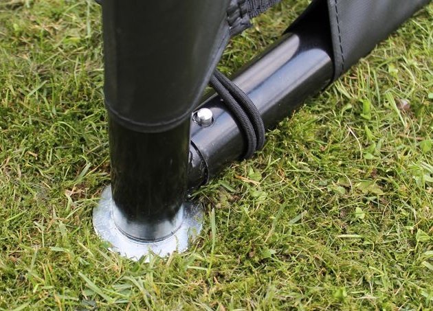 Крепкая черная рама футбольных ворот оцинкована и покрыта порошковой краской чтобы обеспечить длительный срок службы, а сетка с мелкой ячейкой закреплена на ней инновационным способом, не позволяя мячу пролетать между рамой и сеткой.