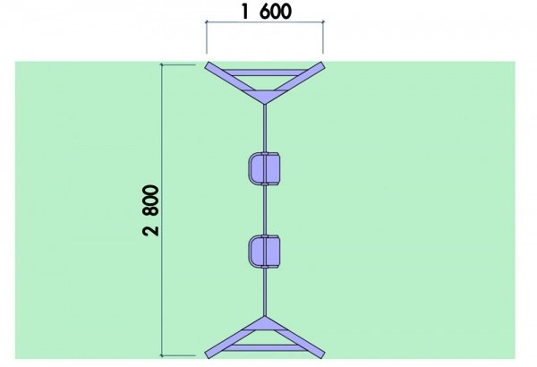 Свободная зона безопасности 2 м во все стороны от проекции качели.