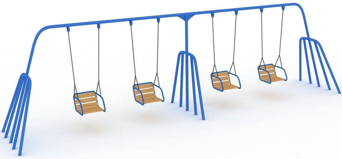 Детские металлические качели на гибкой подвеске для четырех детей с усиленной рамой.