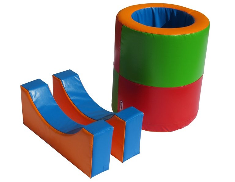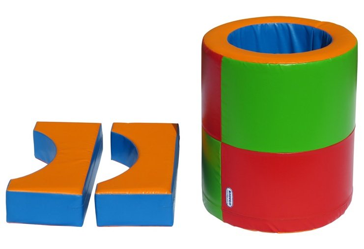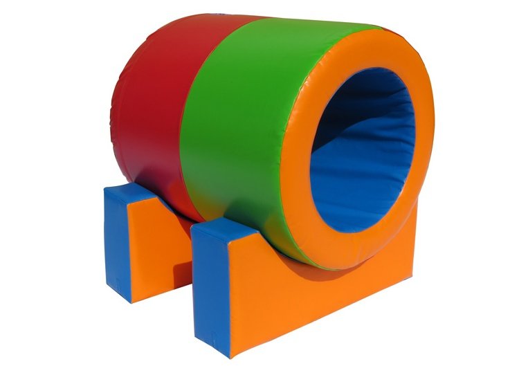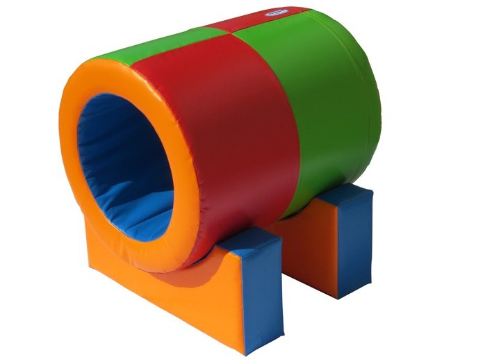 Состоит из трех модулей: цилиндрического колеса и двух подставок. Используется как туннель для пролазывания. Отдельно колесо можно используется как тренажер, в котором ребенок развивает статику, моторику и отлично тренирует мышцы тела при перекатывании колеса по ровной поверхности.