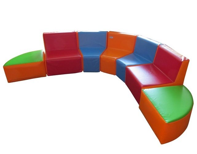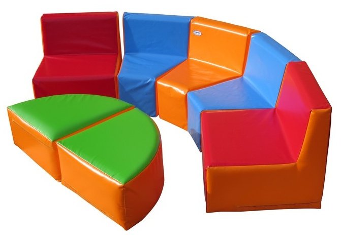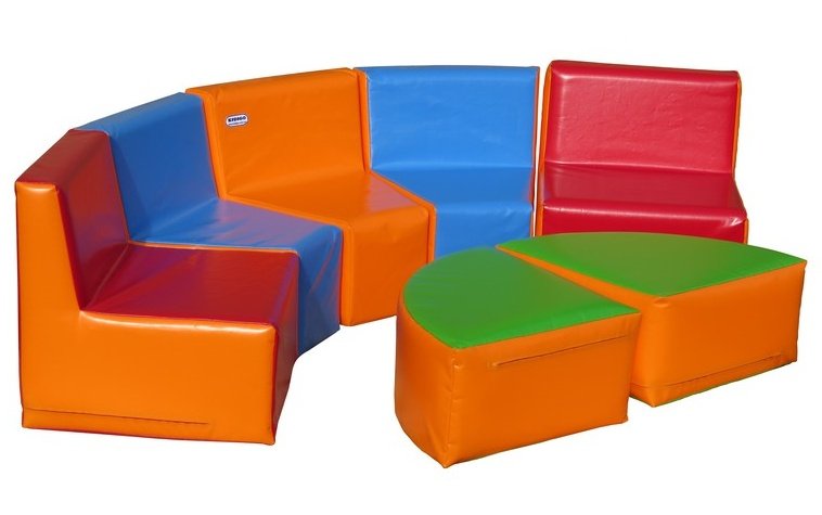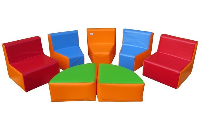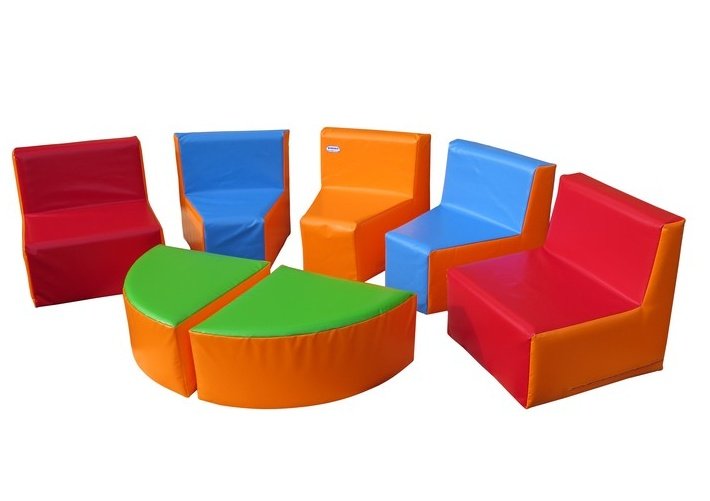 состоит из 5 стульев и 2 столиков-пуфиков. По желанию заказчика набор может быть изготовлен с аппликациями. Этот уголок станет украшением любой детской комнаты.