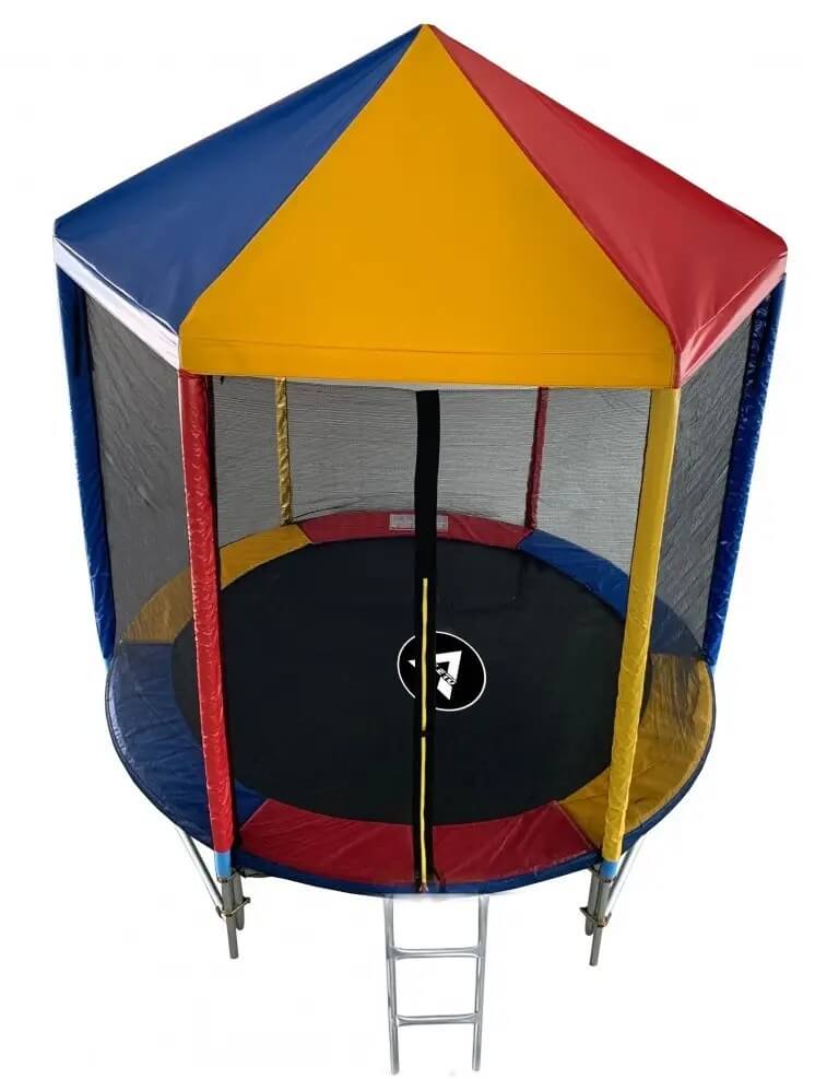Батут диаметром 252 см, оснащен 42 оцинкованными пружинами. Мат батута изготовлен из высококачественных материалов, устойчивых к ультрафиолету. Защитная сеткой на молнии.