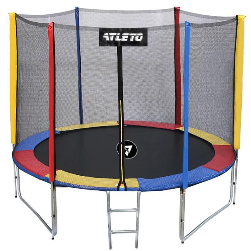 Батут Atleto 252 см с защитной сеткой и металлической лесенкой