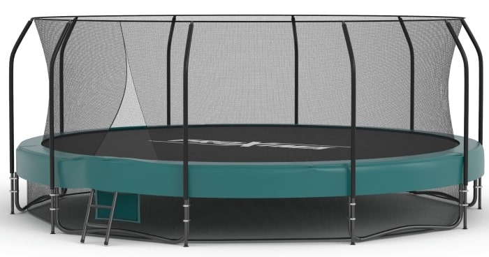 Прочная рама с гальваническим покрытием снаружи и изнутри и использованием углеродистого волокна. Крепкие гальванизированные пружины. Защитный мат на пружинах создан из нескольких слоев: мягкий амортизирующий поролонообразный слой покрыт несколькими слоями полиэтилена и внешним слоем ПВХ. Сетка безопасности - лавсан из полиэфирных волокон. Он дает очень небольшую усадку, также эта ткань слабо растяжима, отличается высокой прочностью и износоустойчивостью, влагостойкий, устойчивый к ультрафиолету.